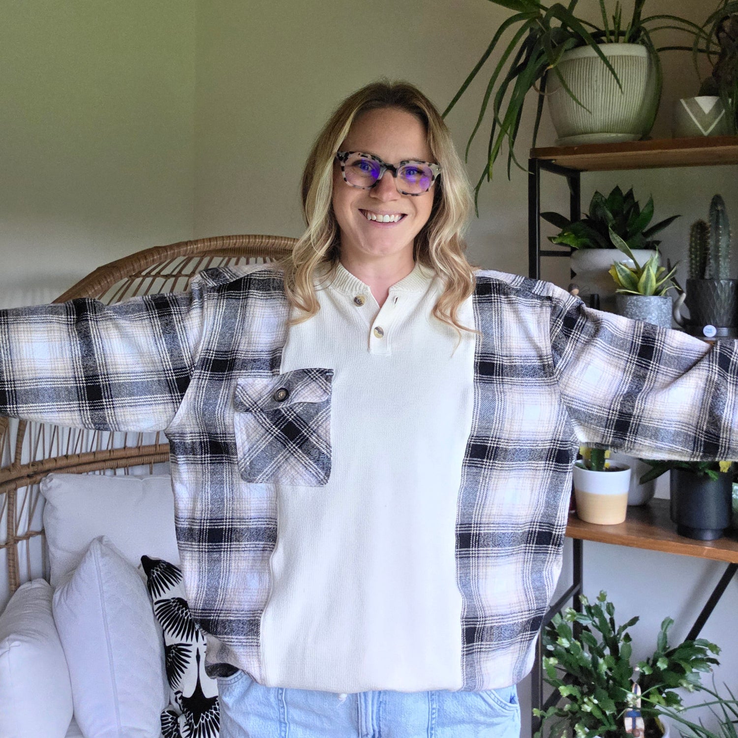 Built for stargazing, story-swapping, and chasing memories, the Bonfire Bestie is an upcycled, one-of-a-kind shirt with that perfectly worn-in feel—like it’s already been on a few adventures. Each piece is unique, made for cozy layers around the campfire, cool nights, or just lounging at home in style.