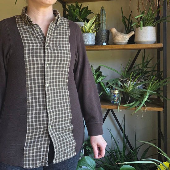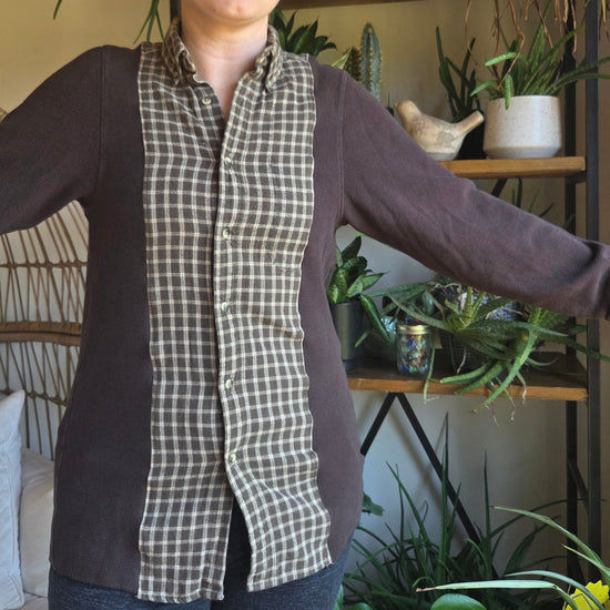 Bonfire Bestie Shirt - Chocolate Brown Thermal + Olive Plaid