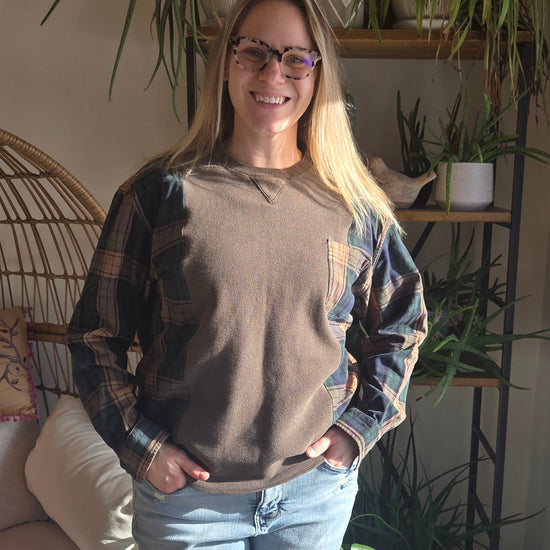 Built for stargazing, story-swapping, and chasing core memories. The Bonfire Bestie is an upcycled, one-of-a-kind shirt with that perfectly worn-in feel—like it’s already been on a few adventures. No two are alike, but each one is made for campfires, cool nights, and cozy layers.