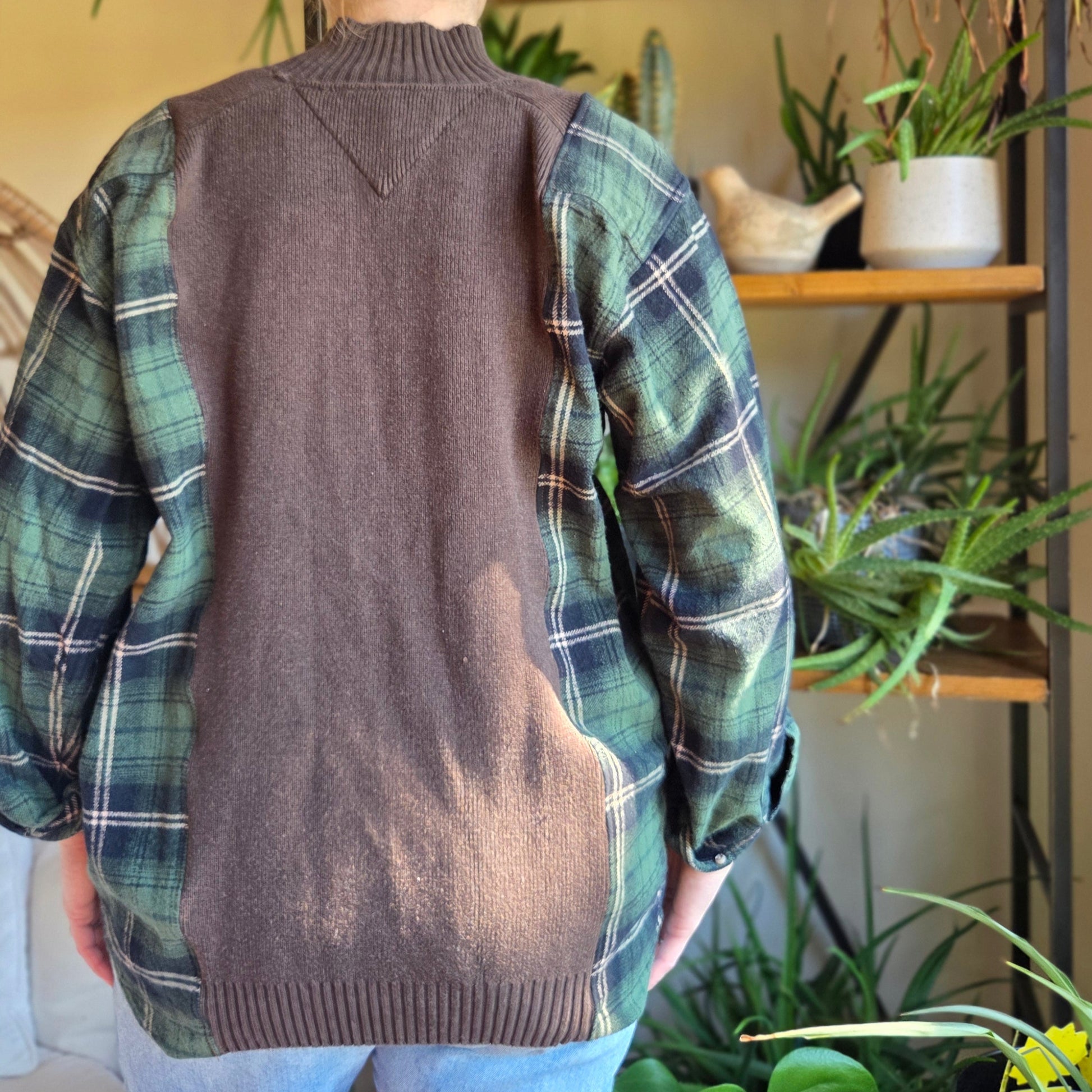Bonfire Bestie Shirt - Forest Plaid + Chocolate Brown Sweater
