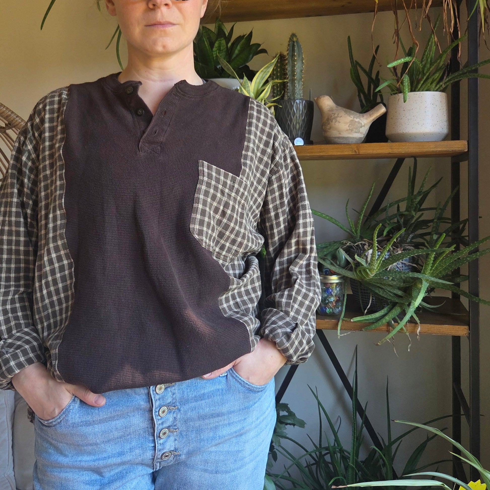 Bonfire Bestie Shirt - Olive Plaid + Chocolate Brown Thermal