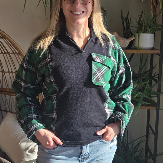 Bonfire Bestie Shirt - Green & Black Plaid + Black Sweater