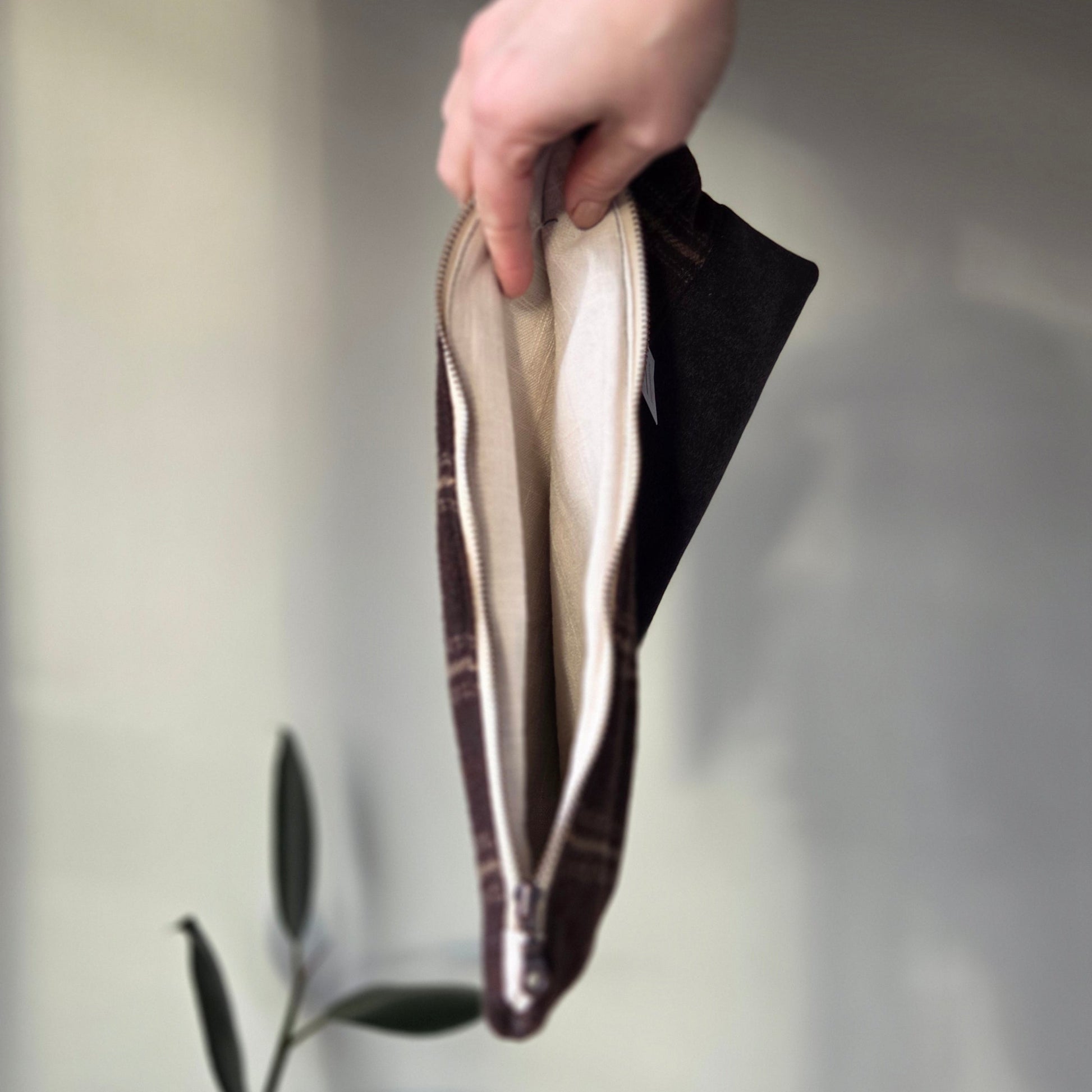Each unique clutch is created with minimal waste in mind and uses scrap wool and leather from other Grandma Skills'® collections to keep it out of the landfill.