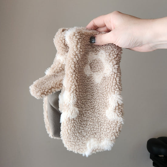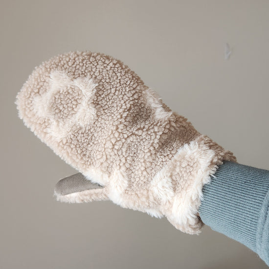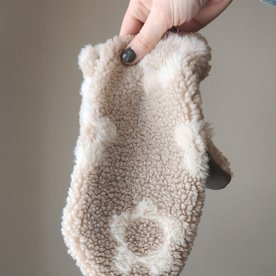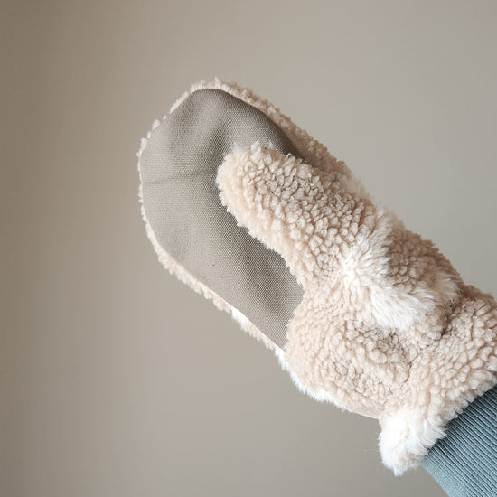 Cleaning: Please only launder your mittens when absolutely necessary to ensure it will last you many years to come. Sherpa mittens can be hand-washed or on a gentle cycle on cool. Please do not throw your mittens in the dryer...you will be sad.
