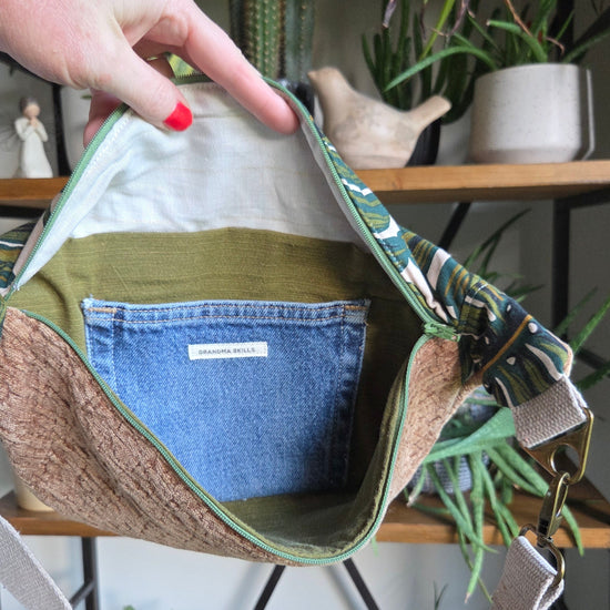 Carry your essentials with style and sustainability in this handcrafted upcycled denim fanny pack.