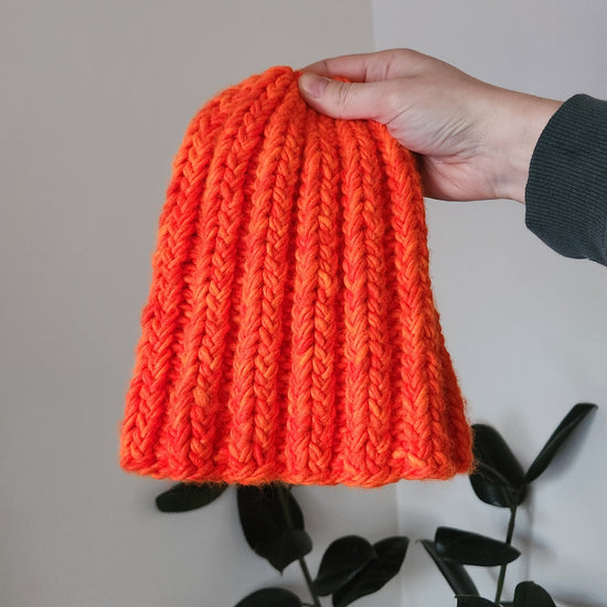 Neon Orange Handknit Beanie