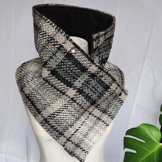 Slim Fit Snap Cowl-Basic Gray Plaid