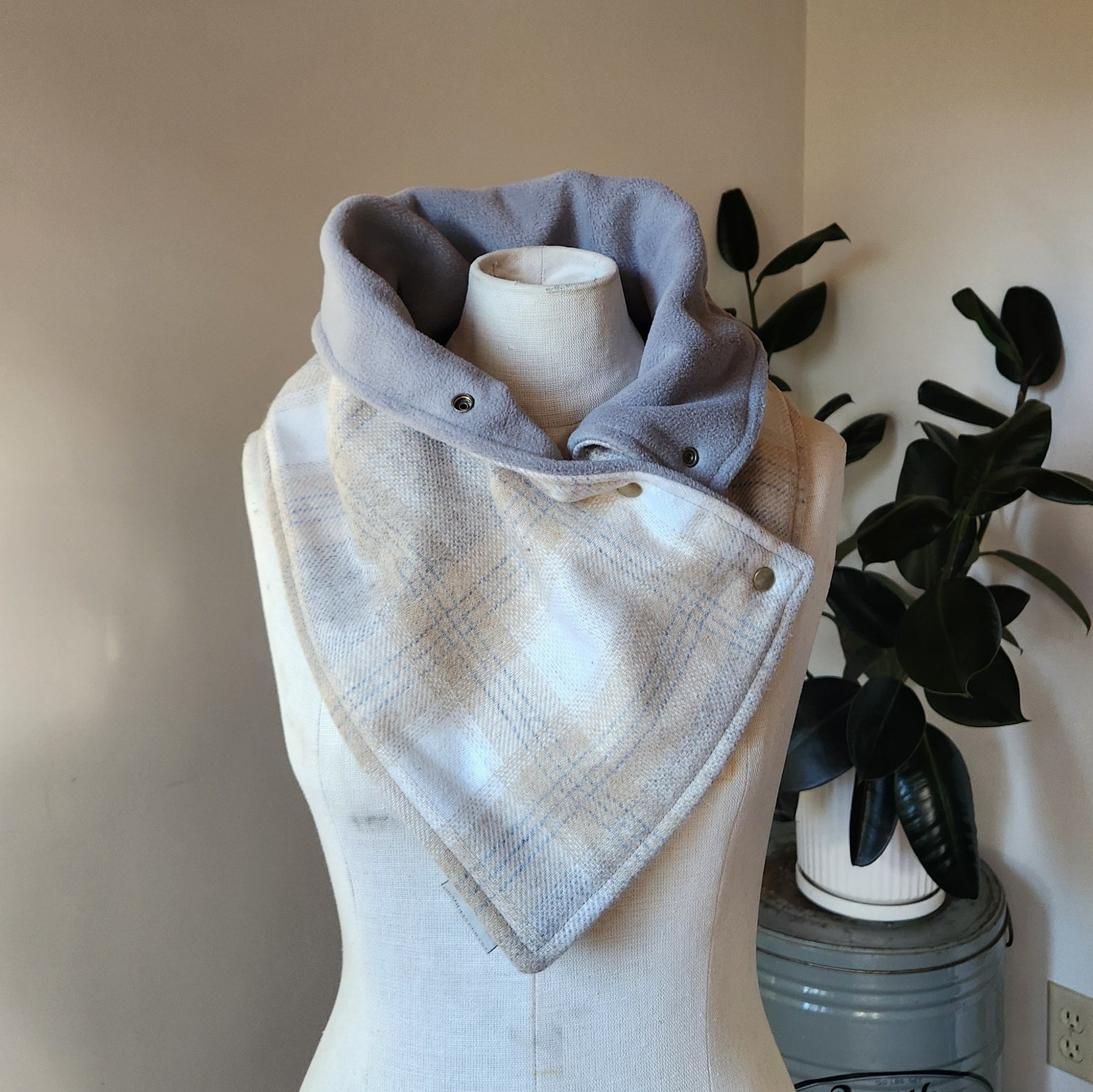 Pre-Order Snap Cowl-Gray & Beige Plaid Slim Fit