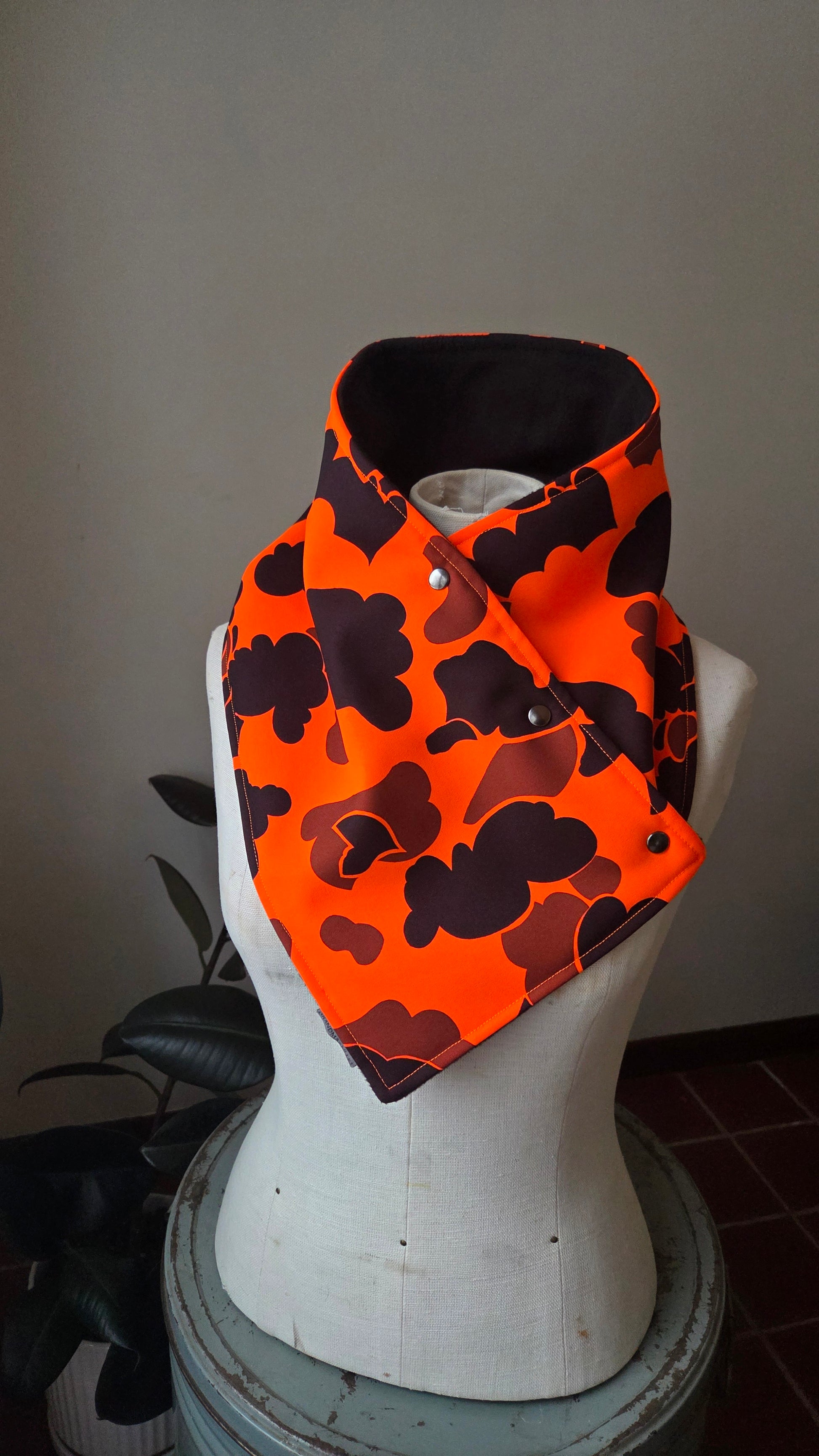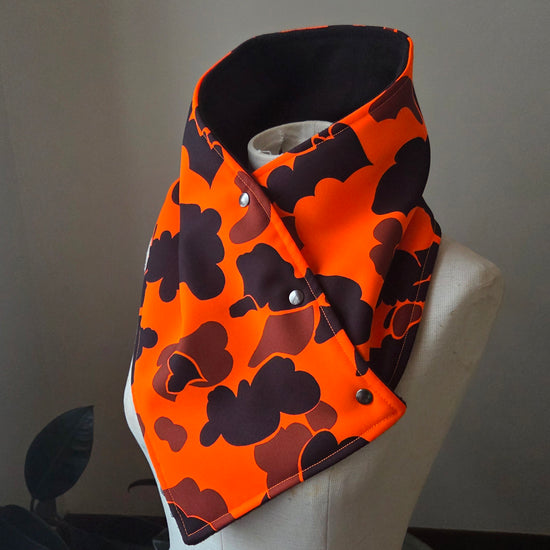 The blaze camo snap cowl is a lighter weight option that would pair well with our neck gaiters if you're looking for extra warmth.