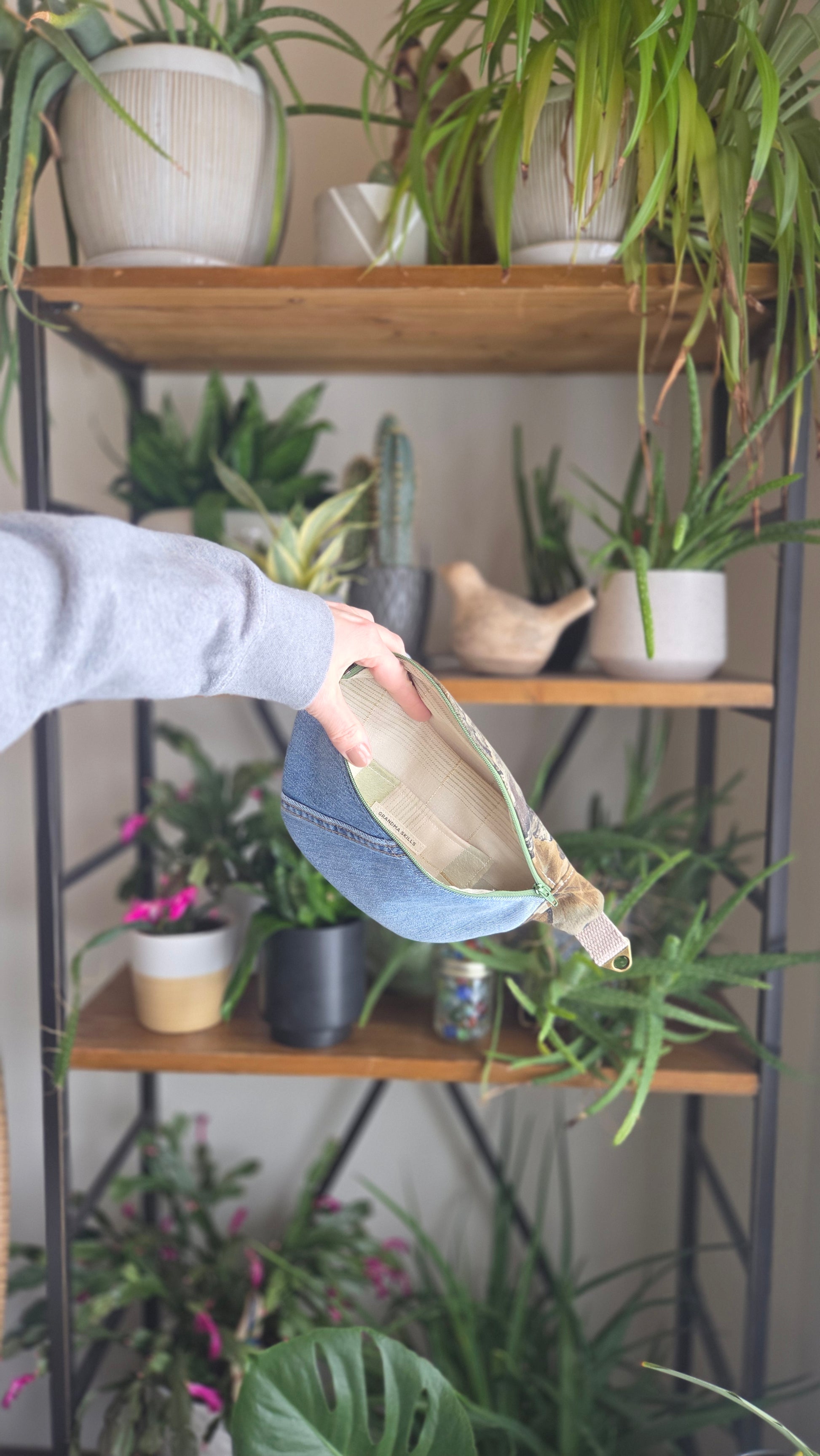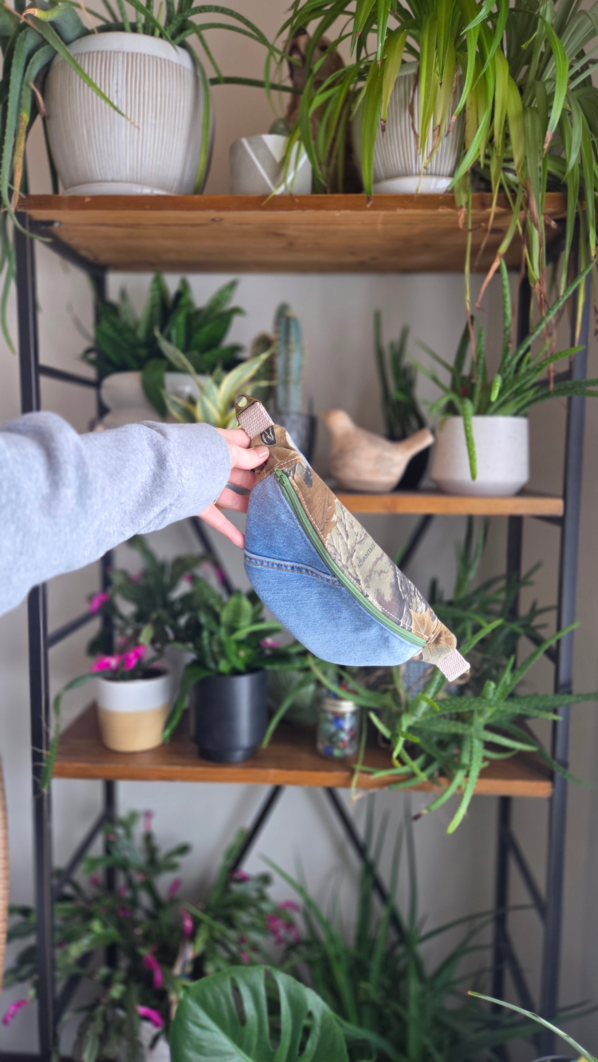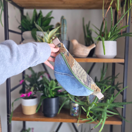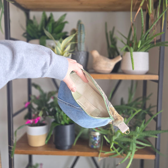Carry your essentials with style and sustainability in this handcrafted upcycled denim fanny pack.