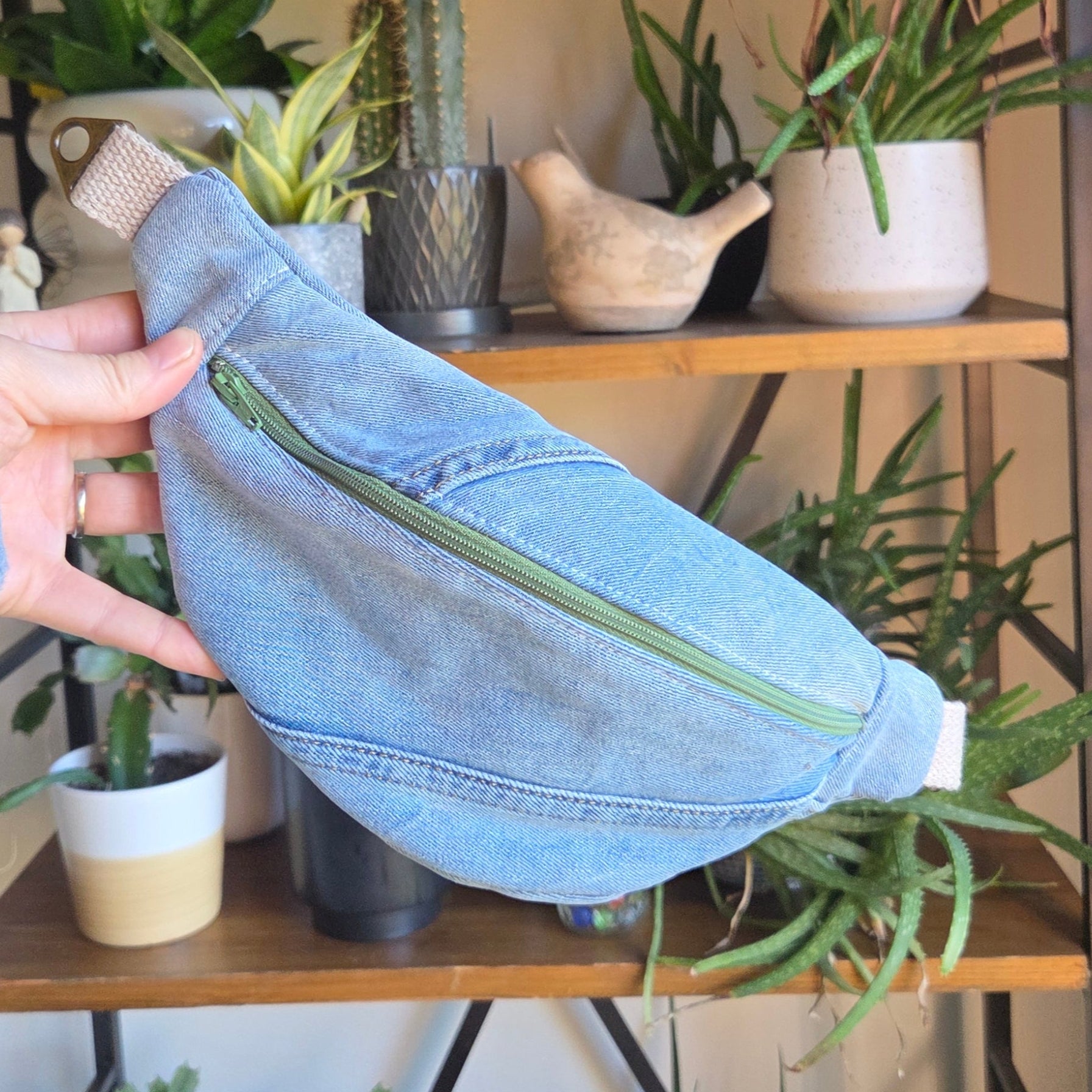 Carry your essentials with style and sustainability in this handcrafted upcycled denim fanny pack.