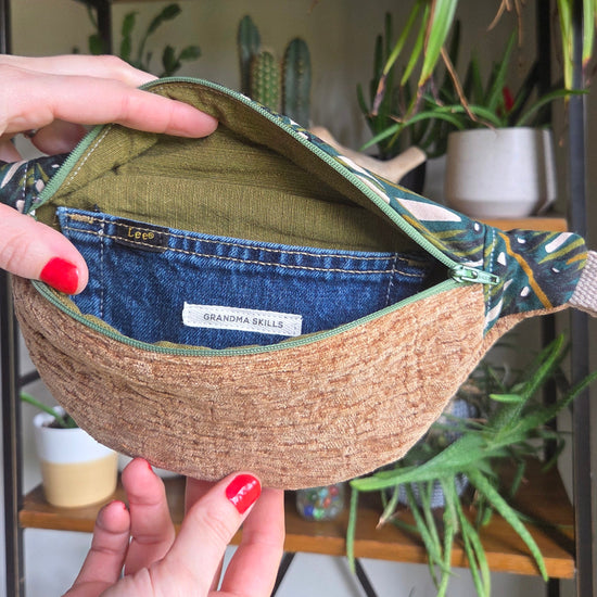 Carry your essentials with style and sustainability in this handcrafted upcycled denim fanny pack.