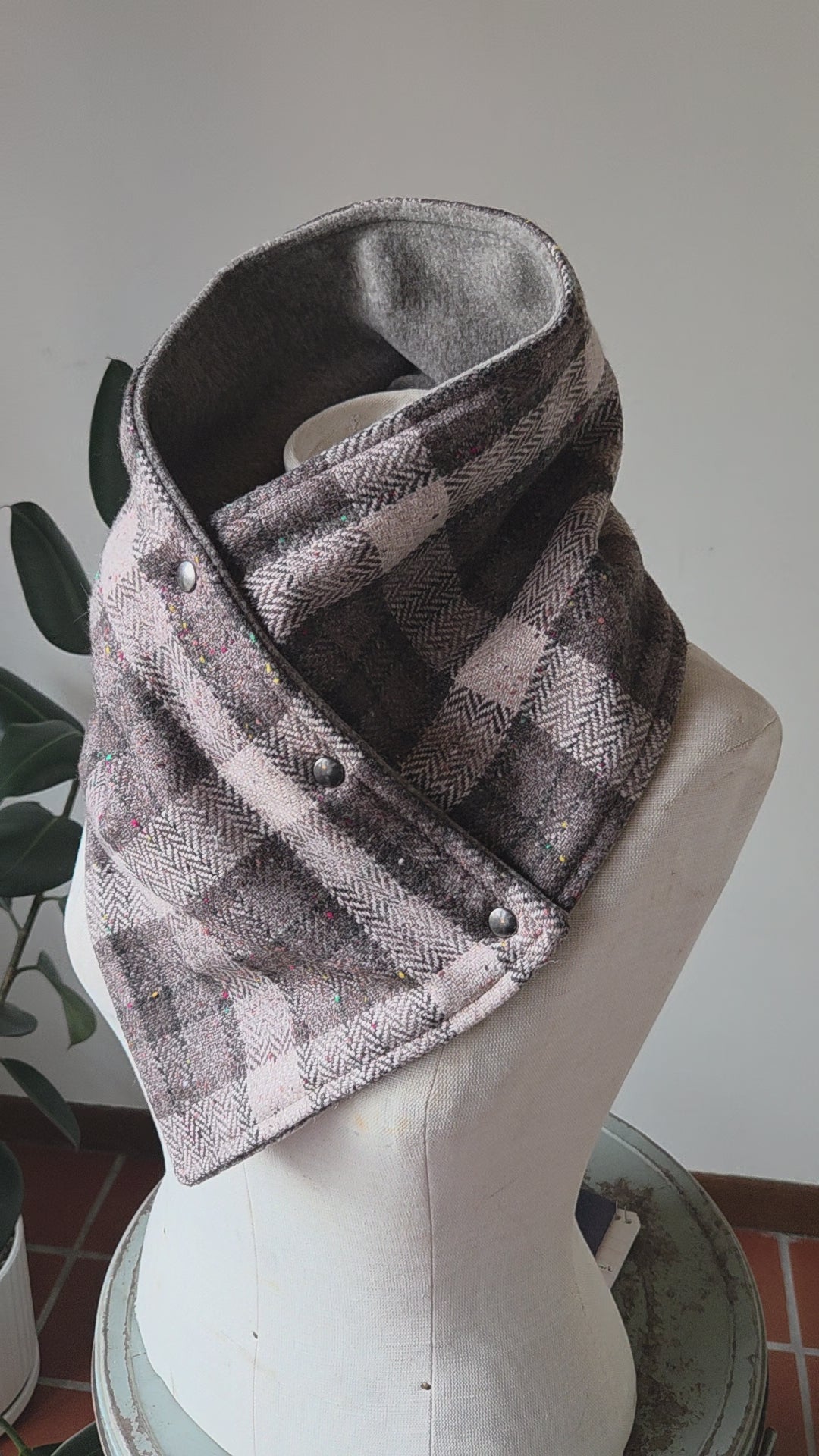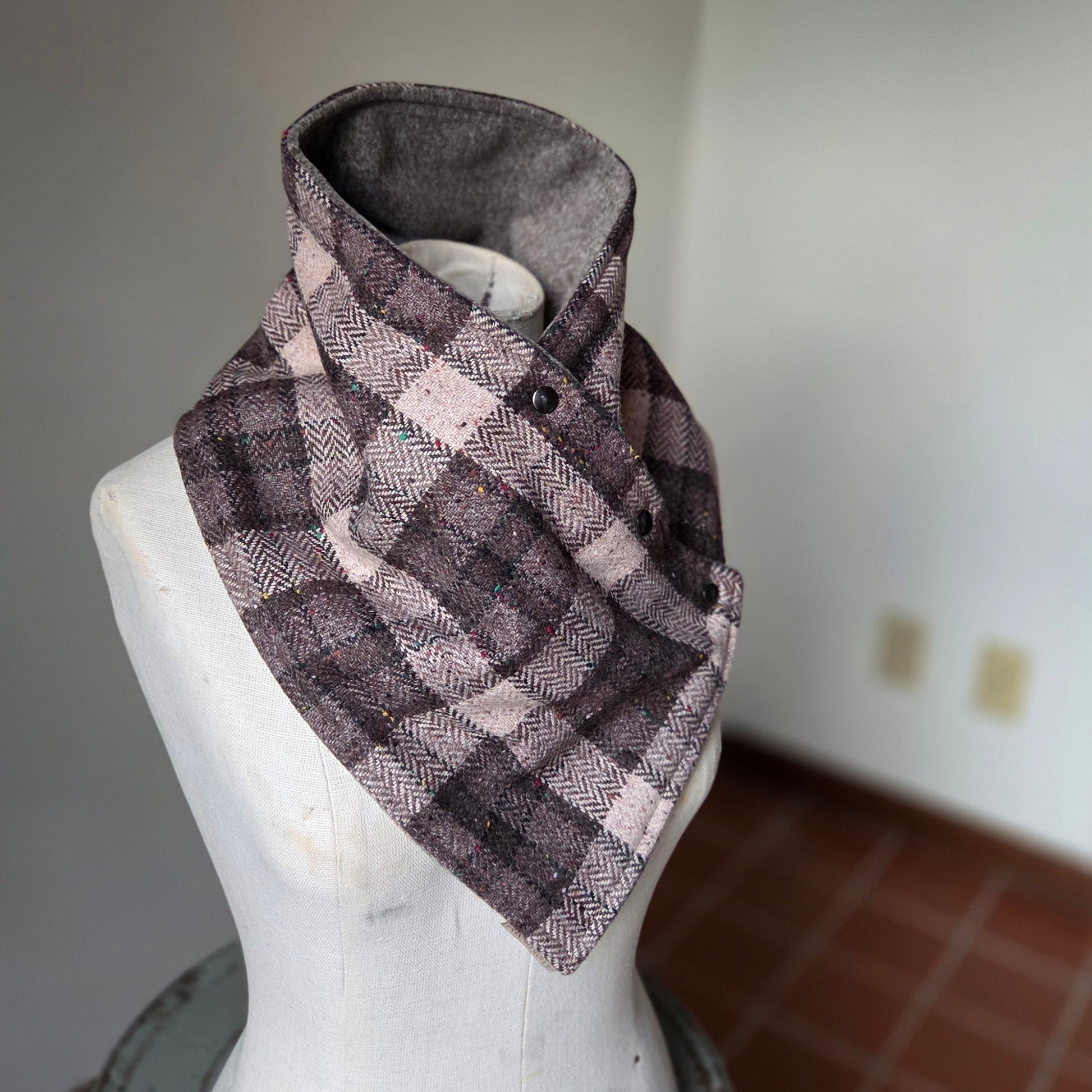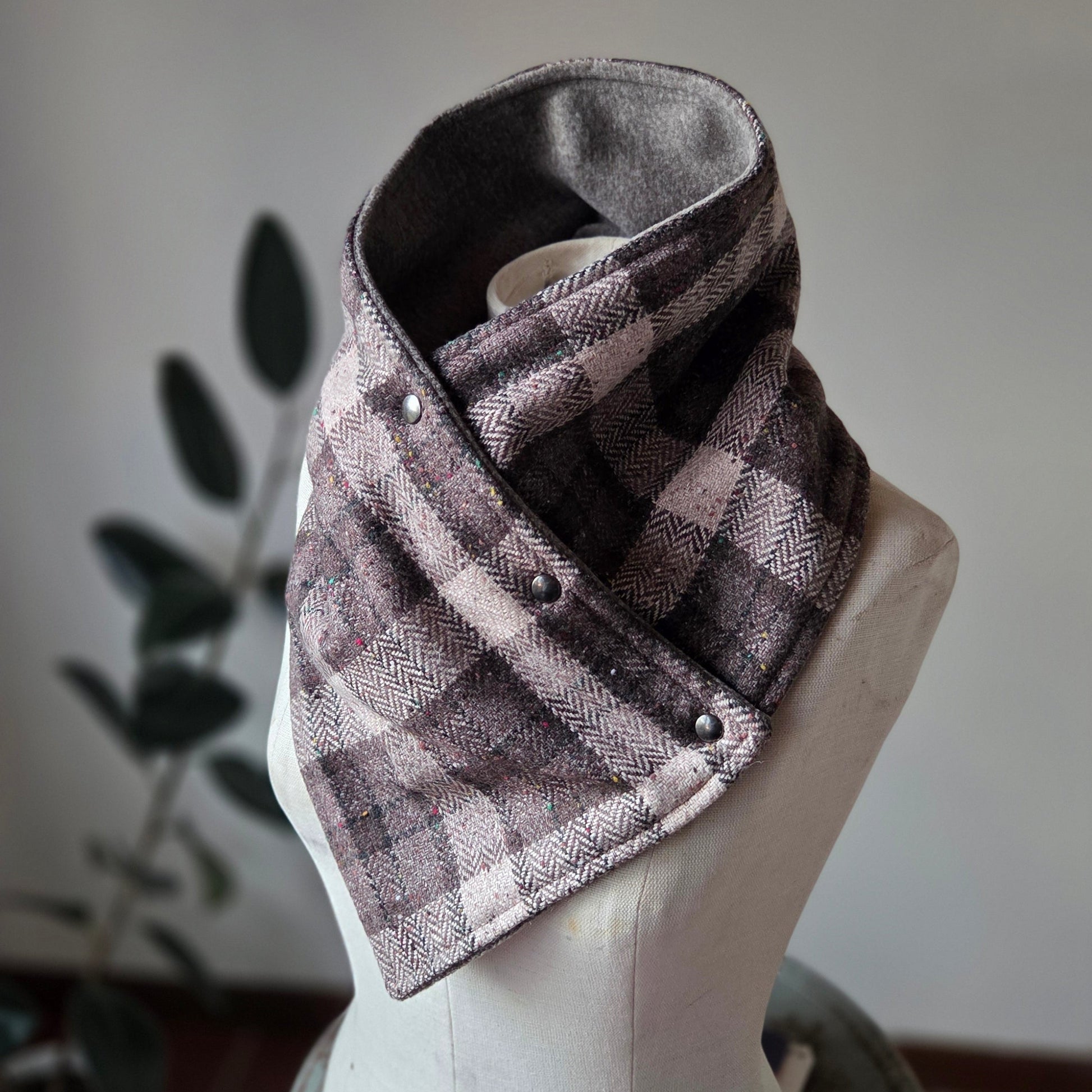 Snap Cowl-Tweed Plaid Slim Fit