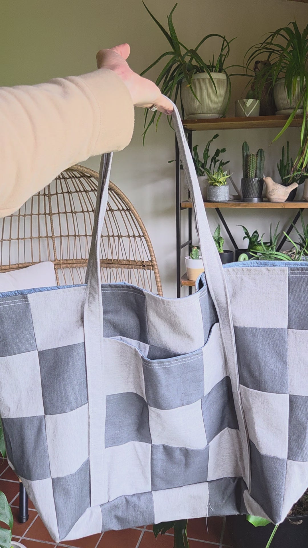 The Everything Tote is a handmade large checkered tote bag designed to carry it all in style. Spacious, sturdy, and chic, this versatile bag is perfect for everyday errands, market days, or weekend getaways.