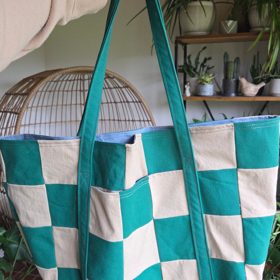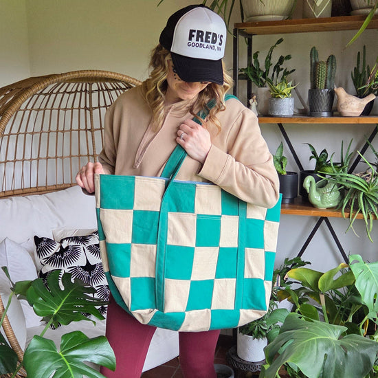 The Everything Tote is a handmade large checkered tote bag designed to carry it all in style. Spacious, sturdy, and chic, this versatile bag is perfect for everyday errands, market days, or weekend getaways.