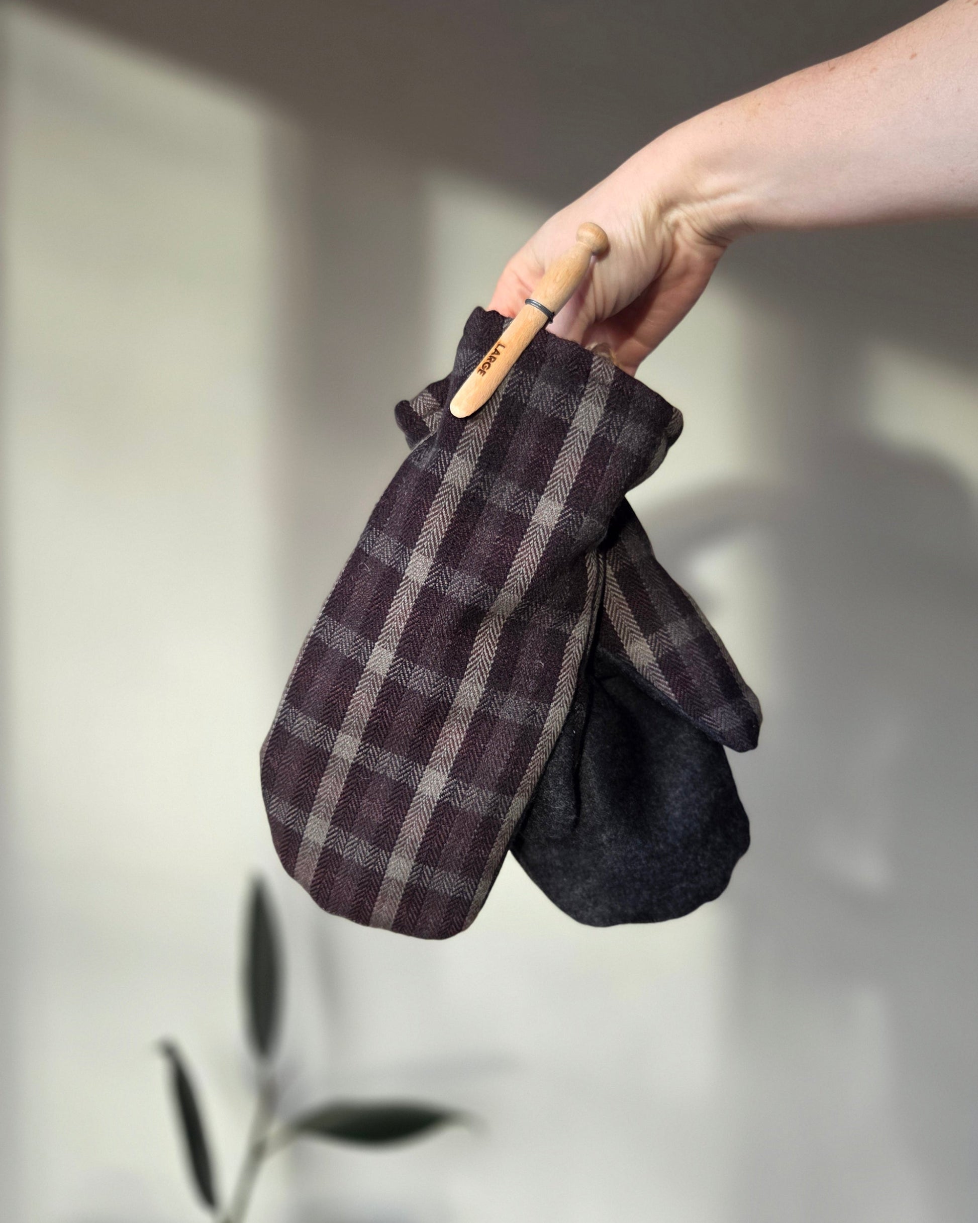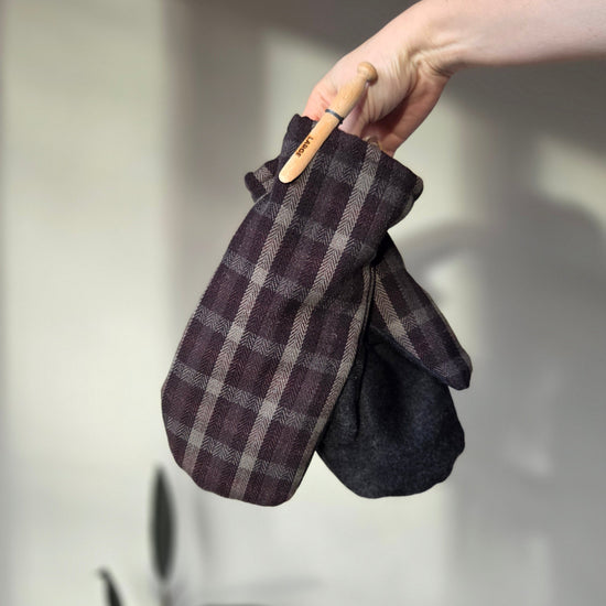 Wool Mittens Beau Plaid Charcoal Palms-Large